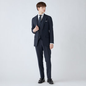 2釦シングル1タックテーパードパンツスリーピーススーツです。