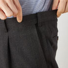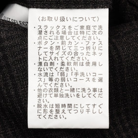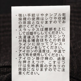 スーツやパンツのサイズ確認は、直立姿勢だけではなく、椅子に座った時の負荷。しゃがんだ時の負荷を考えたサイズ選びを必ずお願いします。ヒップ・太もも部分の生地にゆとりがない場合等の無理なサイズ選びは、体型や動きに関係なく生地や糸に負荷がかかり、「縫い目のほつれ」「生地の破れ」が起こります。また、両太もも同士が当たる場合や生地にゆとりがない場合、股ズレで生地が破れる可能性がございます。実店舗での商品確認・試着にて正しいサイズの購入をお勧めいたします。サイズが合わない事による「縫い目のほつれ」「生地の破れ」は「返品」「交換」「無償修理」はいたしかねます。また商品状態により修理が出来ない場合もございます。