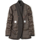 (1)肩パットを省いたアンコン仕立てで、軽くソフトな着心地。