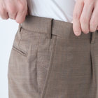 スーツやパンツのサイズ確認は、直立姿勢だけではなく、椅子に座った時の負荷。しゃがんだ時の負荷を考えたサイズ選びを必ずお願いします。ヒップ・太もも部分の生地にゆとりがない場合等の無理なサイズ選びは、体型や動きに関係なく生地や糸に負荷がかかり、「縫い目のほつれ」「生地の破れ」が起こります。また、両太もも同士が当たる場合や生地にゆとりがない場合、股ズレで生地が破れる可能性がございます。実店舗での商品確認・試着にて正しいサイズの購入をお勧めいたします。サイズが合わない事による「縫い目のほつれ」「生地の破れ」は「返品」「交換」「無償修理」はいたしかねます。また商品状態により修理が出来ない場合もございます。