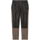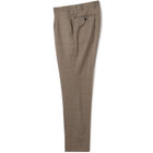 (5)膝から裾口にかけて細くなるテーパードパンツ。