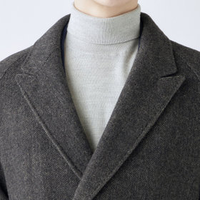 原料調達、反毛、紡績、織布、整理全ての工程を日本国内でおこない、尾州産地でつくられたリサイクルウールRE:NEWOOLを使用。付属や釦・裏地にもサステナブルな素材を使用。オン・オフ兼用で着まわし出来る実用性コートです。