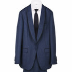 ネイビーの1釦ショールカラー0タックパンツスーツです。「CLASSICO TAPERED」は、(1)ベーシックラペル。(2)Aラインシルエット。(3)肩を内側に入れ表地だけで袖付けしたマニカマッピーナ。(4)二の腕から袖口にかけて細くなるテーパードアーム。(5)膝から裾口にかけて細くなるテーパードパンツ。 SILVER LINEは、ウール本来の風合い、柔らかさがありシワ回復性が高い丈夫な素材を用いて、丁寧な仕立てで縫製致しました。エレガント・曲線・コンフォートをキーワードに全体の美しいシルエットに仕立てながら着やすさを追求しました。スーツセレクトは生産からデザイン、流通まで徹底し高品質なスーツを明快な価格設定とバリエーションから選ぶ事が出来ます。