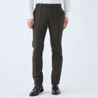 (5)膝から裾口にかけて細くなるテーパードパンツ。