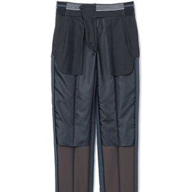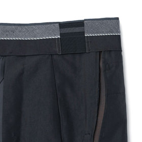 スーツやパンツのサイズ確認は、直立姿勢だけではなく、椅子に座った時の負荷。しゃがんだ時の負荷を考えたサイズ選びを必ずお願いします。ヒップ・太もも部分の生地にゆとりがない場合等の無理なサイズ選びは、体型や動きに関係なく生地や糸に負荷がかかり、「縫い目のほつれ」「生地の破れ」が起こります。また、両太もも同士が当たる場合や生地にゆとりがない場合、股ズレで生地が破れる可能性がございます。実店舗での商品確認・試着にて正しいサイズの購入をお勧めいたします。サイズが合わない事による「縫い目のほつれ」「生地の破れ」は「返品」「交換」「無償修理」はいたしかねます。また商品状態により修理が出来ない場合もございます。