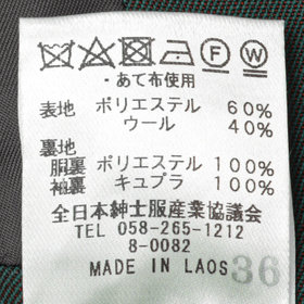 約9.5cmラペル・素材(表地)ポリエステル60%/ウール40%/(裏地)ポリエステル100%/(袖裏)キュプラ100%・サイドベンツ・【着用シーズン:秋冬】