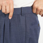 スーツやパンツのサイズ確認は、直立姿勢だけではなく、椅子に座った時の負荷。