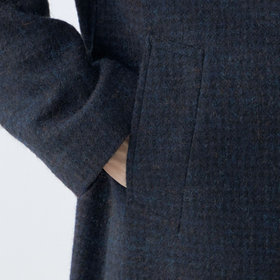 英国マラリウスの生地を使用しツイード特有の硬さを抑えながら適度なハリとソフトな風合いを両立させています。豊かな膨らみと凹凸感ある生地がカントリー調らしさのコートです。