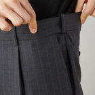 スーツやパンツのサイズ確認は、直立姿勢だけではなく、椅子に座った時の負荷。しゃがんだ時の負荷を考えたサイズ選びを必ずお願いします。ヒップ・太もも部分の生地にゆとりがない場合等の無理なサイズ選びは、体型や動きに関係なく生地や糸に負荷がかかり、「縫い目のほつれ」「生地の破れ」が起こります。また、両太もも同士が当たる場合や生地にゆとりがない場合、股ズレで生地が破れる可能性がございます。実店舗での商品確認・試着にて正しいサイズの購入をお勧めいたします。サイズが合わない事による「縫い目のほつれ」「生地の破れ」は「返品」「交換」「無償修理」はいたしかねます。また商品状態により修理が出来ない場合もございます。
