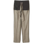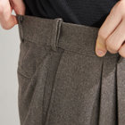 スーツやパンツのサイズ確認は、直立姿勢だけではなく、椅子に座った時の負荷。しゃがんだ時の負荷を考えたサイズ選びを必ずお願いします。ヒップ・太もも部分の生地にゆとりがない場合等の無理なサイズ選びは、体型や動きに関係なく生地や糸に負荷がかかり、「縫い目のほつれ」「生地の破れ」が起こります。また、両太もも同士が当たる場合や生地にゆとりがない場合、股ズレで生地が破れる可能性がございます。実店舗での商品確認・試着にて正しいサイズの購入をお勧めいたします。サイズが合わない事による「縫い目のほつれ」「生地の破れ」は「返品」「交換」「無償修理」はいたしかねます。また商品状態により修理が出来ない場合もございます。