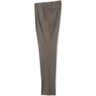 (5)膝から裾口にかけて細くなるテーパードパンツ。