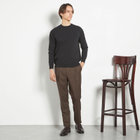 (5)膝から裾口にかけて細くなるテーパードパンツ。