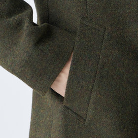原料調達、反毛、紡績、織布、整理全ての工程を日本国内でおこない、尾州産地でつくられたリサイクルウールRE:NEWOOLを使用。付属や釦・裏地にもサステナブルな素材を使用。オン・オフ兼用で着まわし出来る実用性コートです。