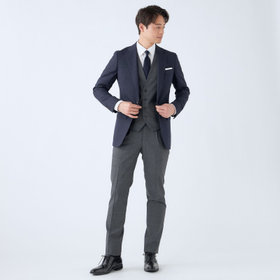 約8.5cmラペル・素材(表地)ポリエステル57%/ウール40%/ポリウレタン3%・(裏地)ポリエステル100%・サイドベンツ・【着用シーズン:オールシーズン】