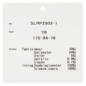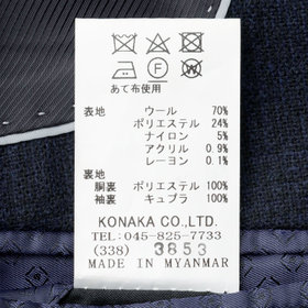 素材(表地)ウール70%/ポリエステル24%/ナイロン5%/アクリル0.9%/レーヨン0.1%/(裏地)ポリエステル100%/(袖裏)キュプラ100%・サイドベンツ・【着用シーズン:秋冬】