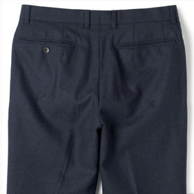 スーツやパンツのサイズ確認は、直立姿勢だけではなく、椅子に座った時の負荷。しゃがんだ時の負荷を考えたサイズ選びを必ずお願いします。ヒップ・太もも部分の生地にゆとりがない場合等の無理なサイズ選びは、体型や動きに関係なく生地や糸に負荷がかかり、「縫い目のほつれ」「生地の破れ」が起こります。また、両太もも同士が当たる場合や生地にゆとりがない場合、股ズレで生地が破れる可能性がございます。実店舗での商品確認・試着にて正しいサイズの購入をお勧めいたします。サイズが合わない事による「縫い目のほつれ」「生地の破れ」は「返品」「交換」「無償修理」はいたしかねます。また商品状態により修理が出来ない場合もございます。