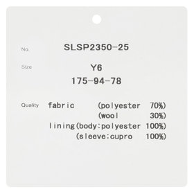 約8.5cmラペル・素材(表地)ポリエステル70%/ウール30%/(裏地)ポリエステル100%・サイドベンツ・【着用シーズン:年間】