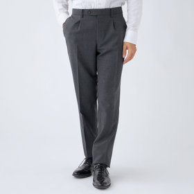 スーツやパンツのサイズ確認は、直立姿勢だけではなく、椅子に座った時の負荷。しゃがんだ時の負荷を考えたサイズ選びを必ずお願いします。ヒップ・太もも部分の生地にゆとりがない場合等の無理なサイズ選びは、体型や動きに関係なく生地や糸に負荷がかかり、「縫い目のほつれ」「生地の破れ」が起こります。また、両太もも同士が当たる場合や生地にゆとりがない場合、股ズレで生地が破れる可能性がございます。実店舗での商品確認・試着にて正しいサイズの購入をお勧めいたします。サイズが合わない事による「縫い目のほつれ」「生地の破れ」は「返品」「交換」「無償修理」はいたしかねます。また商品状態により修理が出来ない場合もございます。