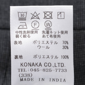 約8.0cmラペル・素材(表地)ポリエステル70%/ウール30%/(裏地)ポリエステル100%・サイドベンツ・【着用シーズン:秋冬】