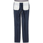 スーツやパンツのサイズ確認は、直立姿勢だけではなく、椅子に座った時の負荷。しゃがんだ時の負荷を考えたサイズ選びを必ずお願いします。ヒップ・太もも部分の生地にゆとりがない場合等の無理なサイズ選びは、体型や動きに関係なく生地や糸に負荷がかかり、「縫い目のほつれ」「生地の破れ」が起こります。また、両太もも同士が当たる場合や生地にゆとりがない場合、股ズレで生地が破れる可能性がございます。実店舗での商品確認・試着にて正しいサイズの購入をお勧めいたします。サイズが合わない事による「縫い目のほつれ」「生地の破れ」は「返品」「交換」「無償修理」はいたしかねます。また商品状態により修理が出来ない場合もございます。