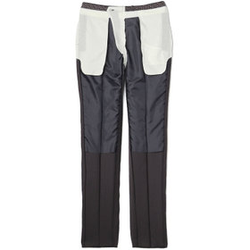(5)膝から裾口にかけて細くなるテーパードパンツ。