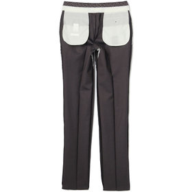 スーツやパンツのサイズ確認は、直立姿勢だけではなく、椅子に座った時の負荷。しゃがんだ時の負荷を考えたサイズ選びを必ずお願いします。ヒップ・太もも部分の生地にゆとりがない場合等の無理なサイズ選びは、体型や動きに関係なく生地や糸に負荷がかかり、「縫い目のほつれ」「生地の破れ」が起こります。また、両太もも同士が当たる場合や生地にゆとりがない場合、股ズレで生地が破れる可能性がございます。実店舗での商品確認・試着にて正しいサイズの購入をお勧めいたします。サイズが合わない事による「縫い目のほつれ」「生地の破れ」は「返品」「交換」「無償修理」はいたしかねます。また商品状態により修理が出来ない場合もございます。