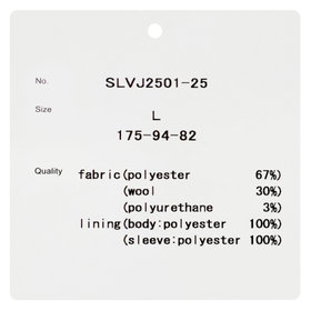 (表地)ポリエステル67%/ウール30%/ポリウレタン3%・(裏地)ポリエステル100%・サイドベンツ・【着用シーズン:年間】