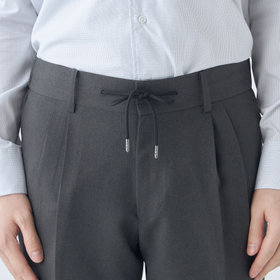(6)着用前に気になるシワやパンツのクリース(折り目)部分にスチームでアイロンを掛けましょう。※必ずあて布をしてアイロンを掛けましょう。また、シワなどはハンドスチーマーがあるとお手入れが簡単です。