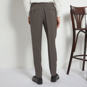 スーツやパンツのサイズ確認は、直立姿勢だけではなく、椅子に座った時の負荷。しゃがんだ時の負荷を考えたサイズ選びを必ずお願いします。ヒップ・太もも部分の生地にゆとりがない場合等の無理なサイズ選びは、体型や動きに関係なく生地や糸に負荷がかかり、「縫い目のほつれ」「生地の破れ」が起こります。また、両太もも同士が当たる場合や生地にゆとりがない場合、股ズレで生地が破れる可能性がございます。実店舗での商品確認・試着にて正しいサイズの購入をお勧めいたします。サイズが合わない事による「縫い目のほつれ」「生地の破れ」は「返品」「交換」「無償修理」はいたしかねます。また商品状態により修理が出来ない場合もございます。