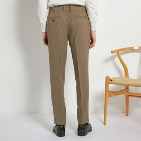 スーツやパンツのサイズ確認は、直立姿勢だけではなく、椅子に座った時の負荷。しゃがんだ時の負荷を考えたサイズ選びを必ずお願いします。ヒップ・太もも部分の生地にゆとりがない場合等の無理なサイズ選びは、体型や動きに関係なく生地や糸に負荷がかかり、「縫い目のほつれ」「生地の破れ」が起こります。また、両太もも同士が当たる場合や生地にゆとりがない場合、股ズレで生地が破れる可能性がございます。実店舗での商品確認・試着にて正しいサイズの購入をお勧めいたします。サイズが合わない事による「縫い目のほつれ」「生地の破れ」は「返品」「交換」「無償修理」はいたしかねます。また商品状態により修理が出来ない場合もございます。