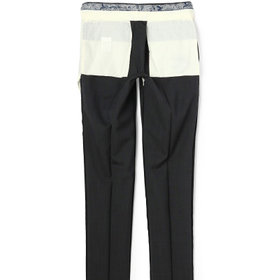 スーツやパンツのサイズ確認は、直立姿勢だけではなく、椅子に座った時の負荷。しゃがんだ時の負荷を考えたサイズ選びを必ずお願いします。ヒップ・太もも部分の生地にゆとりがない場合等の無理なサイズ選びは、体型や動きに関係なく生地や糸に負荷がかかり、「縫い目のほつれ」「生地の破れ」が起こります。また、両太もも同士が当たる場合や生地にゆとりがない場合、股ズレで生地が破れる可能性がございます。実店舗での商品確認・試着にて正しいサイズの購入をお勧めいたします。サイズが合わない事による「縫い目のほつれ」「生地の破れ」は「返品」「交換」「無償修理」はいたしかねます。また商品状態により修理が出来ない場合もございます。