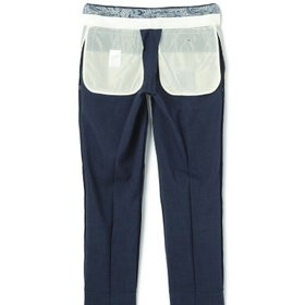 スーツやパンツのサイズ確認は、直立姿勢だけではなく、椅子に座った時の負荷。しゃがんだ時の負荷を考えたサイズ選びを必ずお願いします。ヒップ・太もも部分の生地にゆとりがない場合等の無理なサイズ選びは、体型や動きに関係なく生地や糸に負荷がかかり、「縫い目のほつれ」「生地の破れ」が起こります。また、両太もも同士が当たる場合や生地にゆとりがない場合、股ズレで生地が破れる可能性がございます。実店舗での商品確認・試着にて正しいサイズの購入をお勧めいたします。サイズが合わない事による「縫い目のほつれ」「生地の破れ」は「返品」「交換」「無償修理」はいたしかねます。また商品状態により修理が出来ない場合もございます。