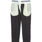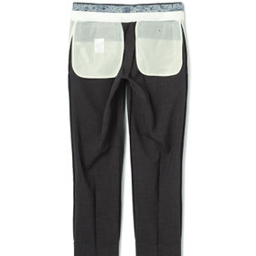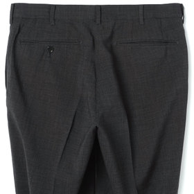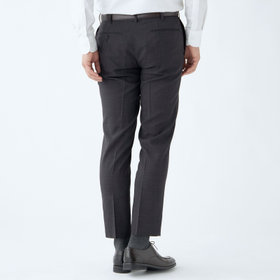 スーツやパンツのサイズ確認は、直立姿勢だけではなく、椅子に座った時の負荷。しゃがんだ時の負荷を考えたサイズ選びを必ずお願いします。ヒップ・太もも部分の生地にゆとりがない場合等の無理なサイズ選びは、体型や動きに関係なく生地や糸に負荷がかかり、「縫い目のほつれ」「生地の破れ」が起こります。また、両太もも同士が当たる場合や生地にゆとりがない場合、股ズレで生地が破れる可能性がございます。実店舗での商品確認・試着にて正しいサイズの購入をお勧めいたします。サイズが合わない事による「縫い目のほつれ」「生地の破れ」は「返品」「交換」「無償修理」はいたしかねます。また商品状態により修理が出来ない場合もございます。