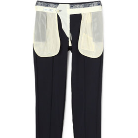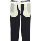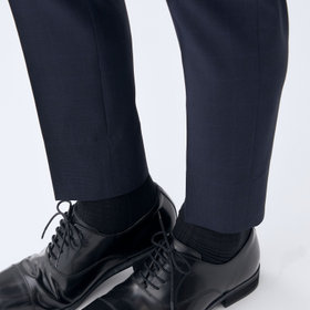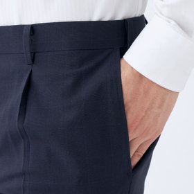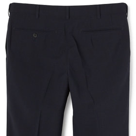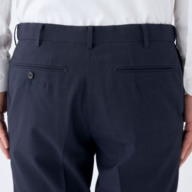 スーツやパンツのサイズ確認は、直立姿勢だけではなく、椅子に座った時の負荷。しゃがんだ時の負荷を考えたサイズ選びを必ずお願いします。ヒップ・太もも部分の生地にゆとりがない場合等の無理なサイズ選びは、体型や動きに関係なく生地や糸に負荷がかかり、「縫い目のほつれ」「生地の破れ」が起こります。また、両太もも同士が当たる場合や生地にゆとりがない場合、股ズレで生地が破れる可能性がございます。実店舗での商品確認・試着にて正しいサイズの購入をお勧めいたします。サイズが合わない事による「縫い目のほつれ」「生地の破れ」は「返品」「交換」「無償修理」はいたしかねます。また商品状態により修理が出来ない場合もございます。