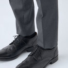 スーツやパンツのサイズ確認は、直立姿勢だけではなく、椅子に座った時の負荷。しゃがんだ時の負荷を考えたサイズ選びを必ずお願いします。ヒップ・太もも部分の生地にゆとりがない場合等の無理なサイズ選びは、体型や動きに関係なく生地や糸に負荷がかかり、「縫い目のほつれ」「生地の破れ」が起こります。また、両太もも同士が当たる場合や生地にゆとりがない場合、股ズレで生地が破れる可能性がございます。実店舗での商品確認・試着にて正しいサイズの購入をお勧めいたします。サイズが合わない事による「縫い目のほつれ」「生地の破れ」は「返品」「交換」「無償修理」はいたしかねます。また商品状態により修理が出来ない場合もございます。