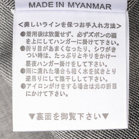 ※イズスペック表の数値は平均値(目安)であり商品により誤差がございます。同じモデル(型番・型紙)でも同商品・同品番でない場合、サイズは異なります。数値だけではサイズが合わない場合がございます。実店舗での試着・購入をおすすめいたします。また、洗濯・乾燥機・クリーニング後は生地の伸び縮みによるサイズの変化がございます。