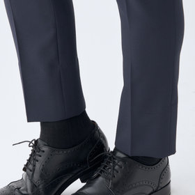 スーツやパンツのサイズ確認は、直立姿勢だけではなく、椅子に座った時の負荷。しゃがんだ時の負荷を考えたサイズ選びを必ずお願いします。ヒップ・太もも部分の生地にゆとりがない場合等の無理なサイズ選びは、体型や動きに関係なく生地や糸に負荷がかかり、「縫い目のほつれ」「生地の破れ」が起こります。また、両太もも同士が当たる場合や生地にゆとりがない場合、股ズレで生地が破れる可能性がございます。実店舗での商品確認・試着にて正しいサイズの購入をお勧めいたします。サイズが合わない事による「縫い目のほつれ」「生地の破れ」は「返品」「交換」「無償修理」はいたしかねます。また商品状態により修理が出来ない場合もございます。