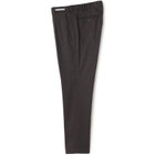 ウエスト部分が伸びるウエストムーブ仕様。膝から裾口にかけて細くなるテーパードパンツ。