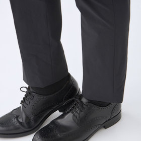 スーツやパンツのサイズ確認は、直立姿勢だけではなく、椅子に座った時の負荷。しゃがんだ時の負荷を考えたサイズ選びを必ずお願いします。ヒップ・太もも部分の生地にゆとりがない場合等の無理なサイズ選びは、体型や動きに関係なく生地や糸に負荷がかかり、「縫い目のほつれ」「生地の破れ」が起こります。また、両太もも同士が当たる場合や生地にゆとりがない場合、股ズレで生地が破れる可能性がございます。実店舗での商品確認・試着にて正しいサイズの購入をお勧めいたします。サイズが合わない事による「縫い目のほつれ」「生地の破れ」は「返品」「交換」「無償修理」はいたしかねます。また商品状態により修理が出来ない場合もございます。