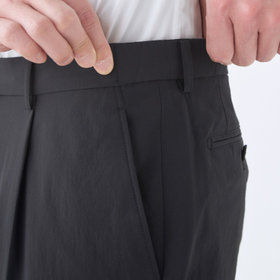 ストレッチ素材で撥水加工を施してあり、雨の日でも安心して着用できます。家庭用洗濯機でも洗濯可能で、清潔にお召しいただけます。ウエストシャーリング仕様。