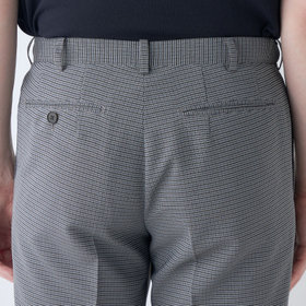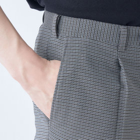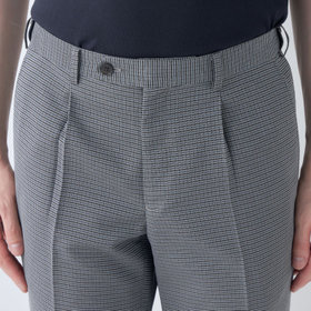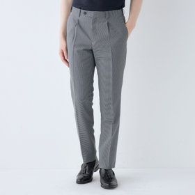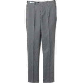 膝から裾口にかけて細くなる1タックテーパードパンツ。