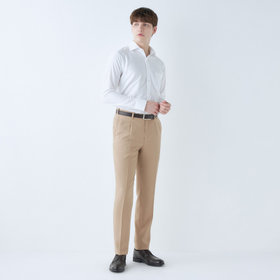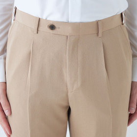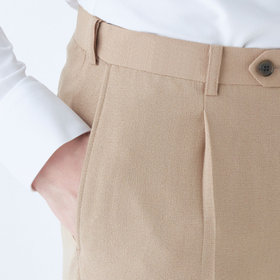 膝から裾口にかけて細くなる1タックテーパードパンツ。