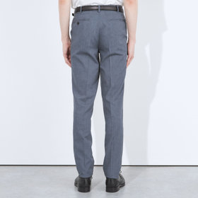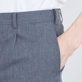 膝から裾口にかけて細くなるテーパードパンツ。