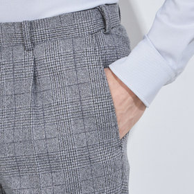 膝から裾口にかけて細くなるテーパードパンツ。フロントポケットを少し斜めにする事で手の入りを良くしています。