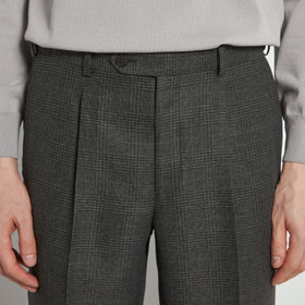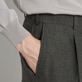 膝から裾口にかけて細くなる1タックテーパードパンツ。