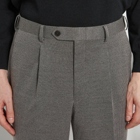 膝から裾口にかけて細くなる1タックテーパードパンツ。