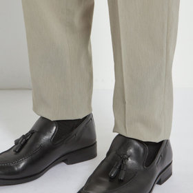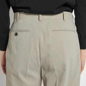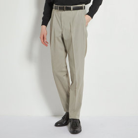 膝から裾口にかけて細くなる1タックテーパードパンツ。