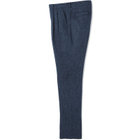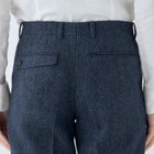「Harris Tweed」(ハリスツイード)はスコットランド北西部のハリス&ルイス島ででつくられる手織りの最高級のツイード素材です。膝から裾口にかけて細くなるテーパードパンツ。フロントポケットを少し斜めにする事で手の入りを良くしています。