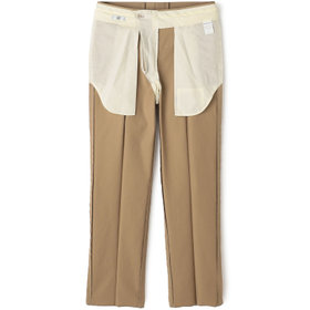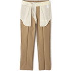 渡りから膝、裾幅にかけて絞りを極力緩やかにし、脚長効果のあるストレートシルエットを構築。