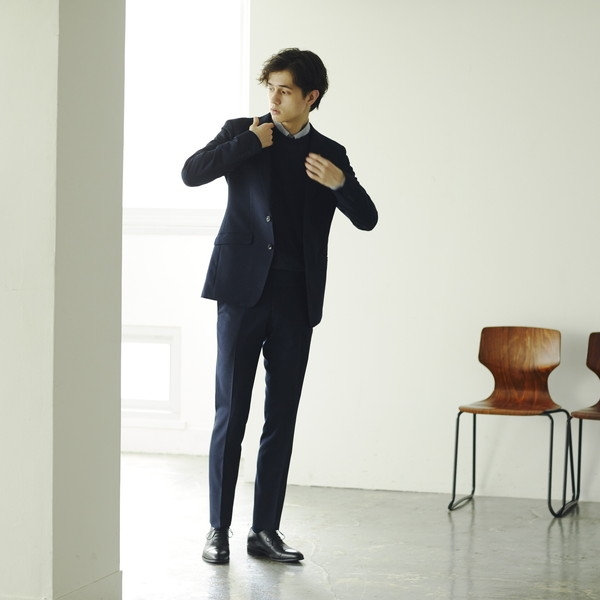 クラシコテーパードのツーピース仕様。全体のシルエットで最近の主流のビジネススーツのデザインをおさえたモデル、オーダーでより自分にあったスーツを。